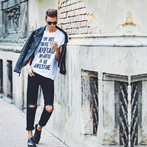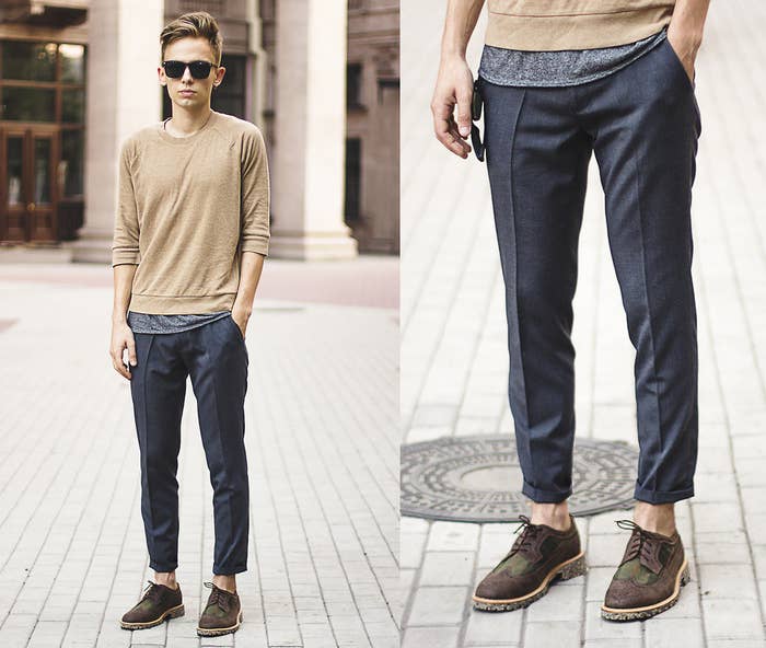 2. Que tus pantalones de vestir te lleguen por el tobillo con una franelita normcore.