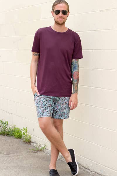 11.Los días de calor ya están aquí. Una playera unicolor y shorts estampados te harán lucir FRESH.